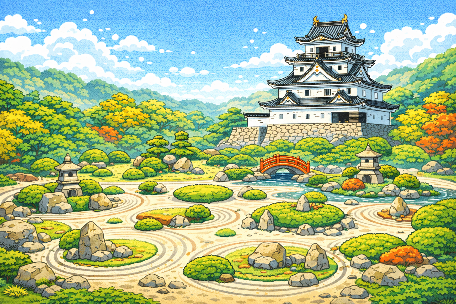 昭和28年、城内に「八陣の庭」という庭園が作られたのは、次のうちどの城郭か?
