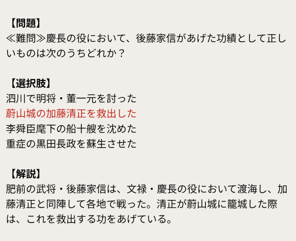 ≪難問≫慶長の役において、後藤家信があげた功績として正しいものは次のうちどれか?
