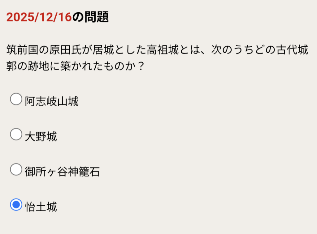 筑前国の原田氏が居城とした高祖城とは、次のうちどの古代城郭の跡地に築かれたものか?