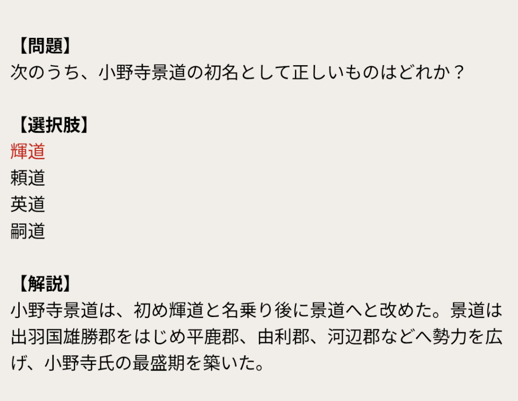次のうち、小野寺景道の初名として正しいものはどれか?