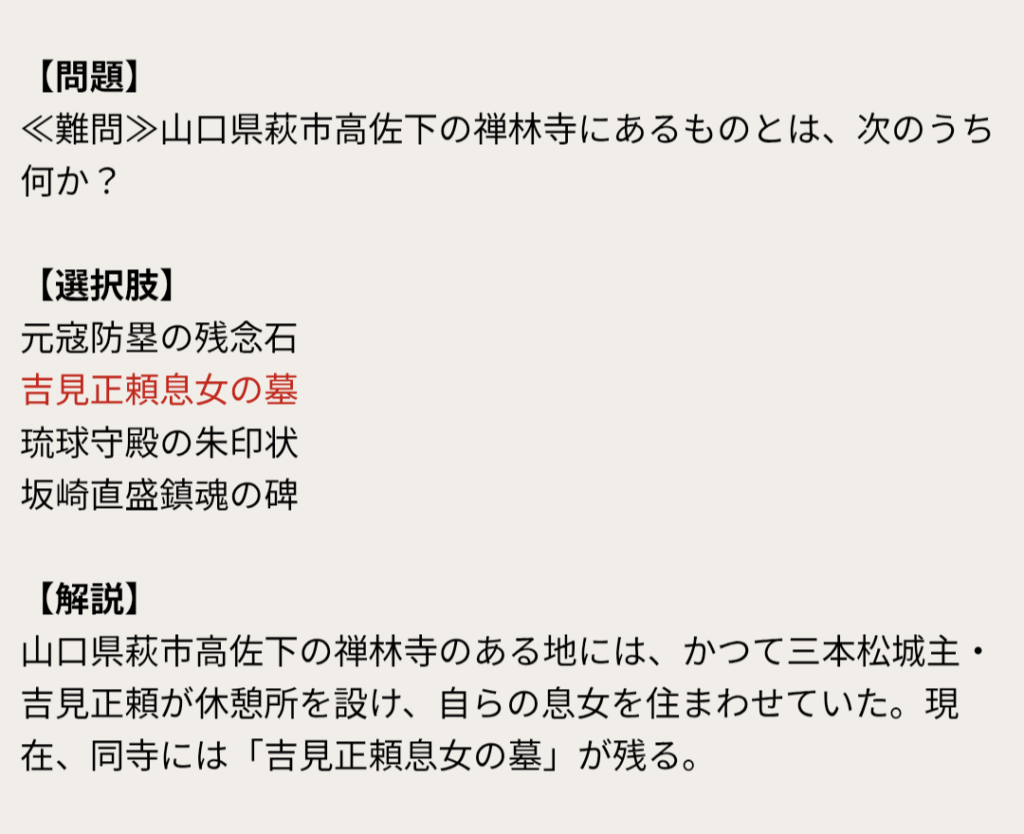 ≪難問≫山口県萩市高佐下の禅林寺にあるものとは、次のうち何か?