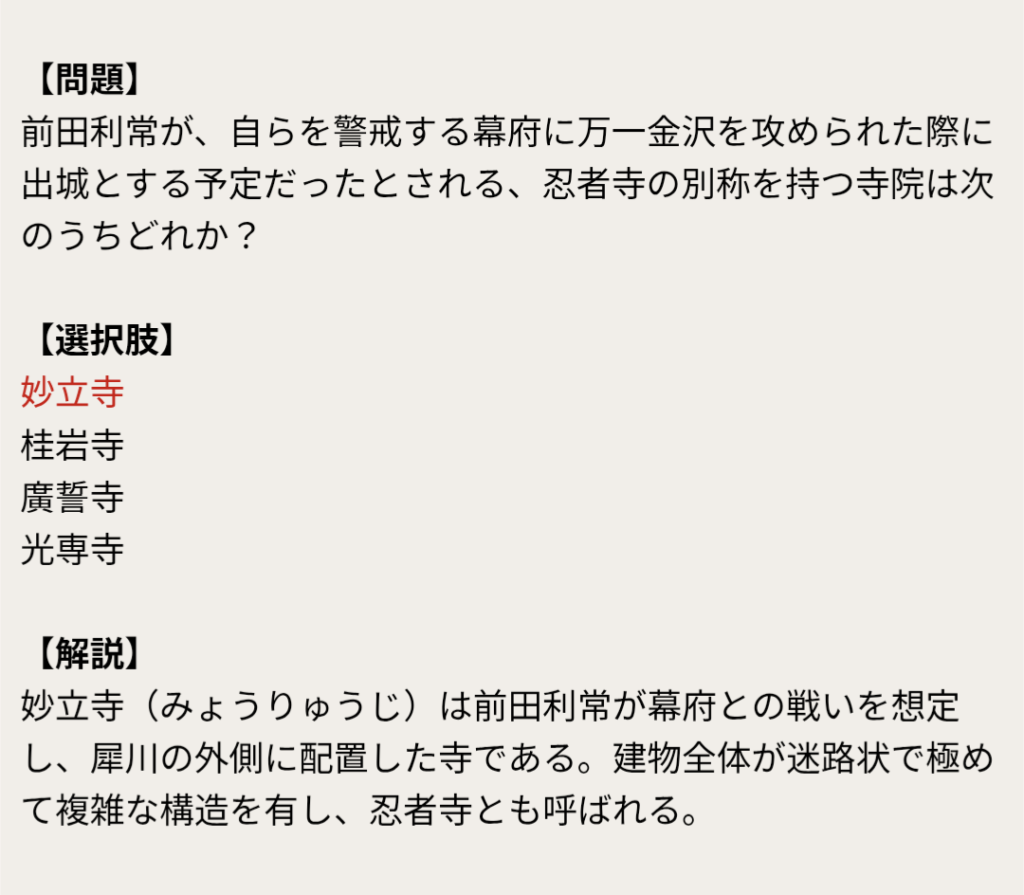 前田利常が、自らを警戒する幕府に万一金沢を攻められた際に出城とする予定だったとされる、忍者寺の別称を持つ寺院は次のうちどれか?